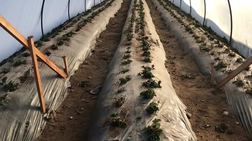 Клубника в балаганах. Зачистка, обработка, накрытие растений.