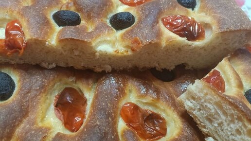 "Картофельная фоккачча" - картофельный хлеб с оливками и помидорами. Готовлю три раза в неделю.