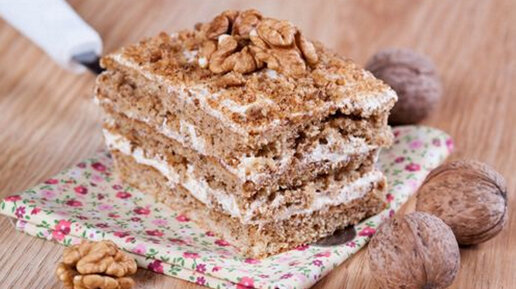 ОРЕХОВЫЙ ТОРТ С БЕЛЫМ КРЕМОМ