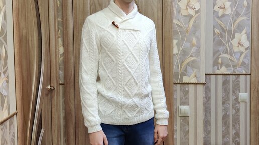 Мужской свитер с шалевым воротником спицами. Рассказываю как вязала. МК по воротнику и окату рукава