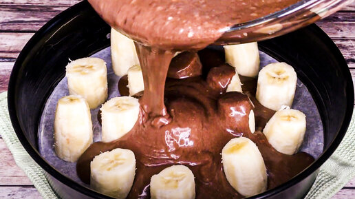 Просто заливаем бананы тестом.Супер нежный и супер ШОКОЛАДНЫЙ ПИРОГ без возни и заморочек!
