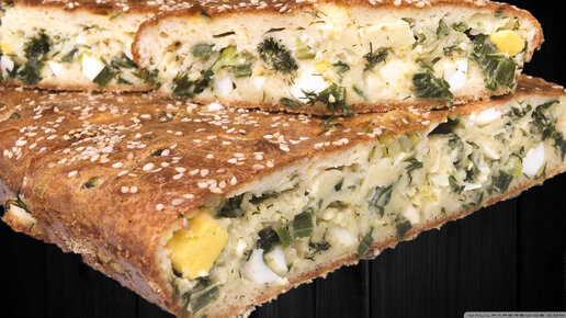 Заливной пирог с зелёным луком и яйцом . Вкусный и быстрый рецепт.