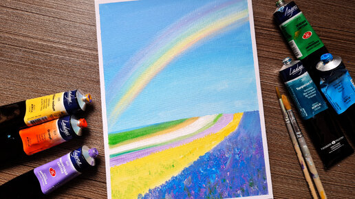 Радуга. Пейзаж акрилом, картина, с пошаговой инструкцией!