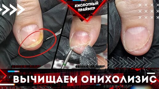 Снова онихолизис ногтей??😱 Отслоение ногтя😵 Подробно! Белые пятна на ногтях, зачищаем!