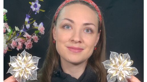 Новогодняя снежинка канзаши. Рождественские заколки снежинки