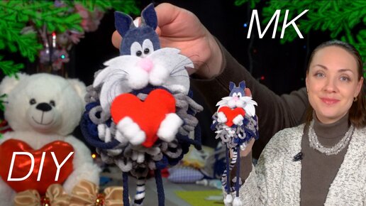 Супер Кот- мультяшная игрушка валентинка из пряжи Лучший подарок своими руками