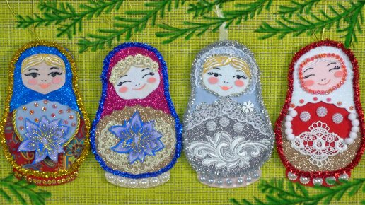 Новогодняя игрушка Матрешка Поделки на елку из фоамирана, синельной проволоки/ картон, бусы, бисер
