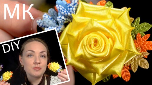 Канзаши Осенняя заколка Роза для девочки