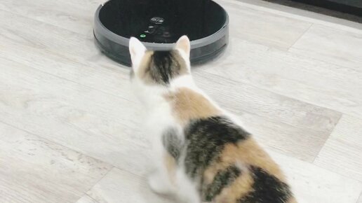 Реакция кошки на первое включение робота пылесоса 😻
