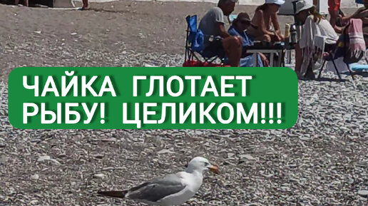 Голодная чайка на побережье Средиземного моря проглотила целую рыбу