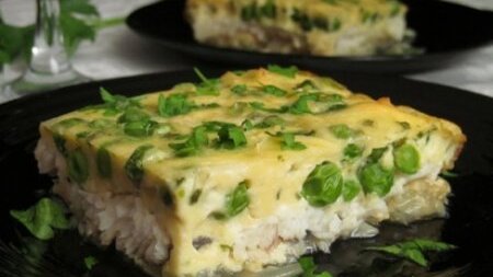 РЫБНЫЕ БЛЮДА. РЫБА ЗАПЕЧЕННАЯ В ОМЛЕТЕ С ЗЕЛЕНЫМ ГОРОШКОМ