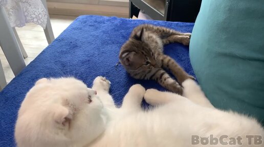 ЛЮБОВЬ КОТА И РЫСИ _ Мейн-Кун играет с бобкэтом