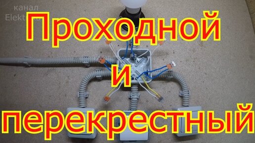 Схема подключения одноклавишного проходного выключателя и перекрёстного переключателя.
