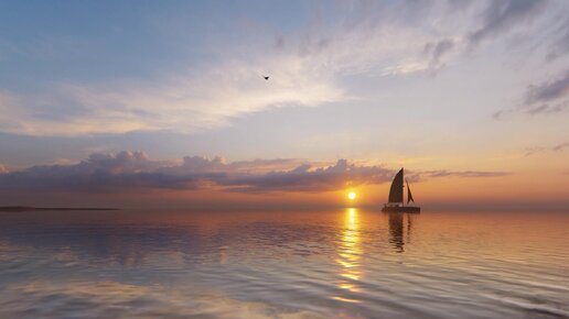 🔴 Фортепианная музыка и Спокойный Закат над Океаном на Парусной лодке. Медитация, Сон, Расслабление.