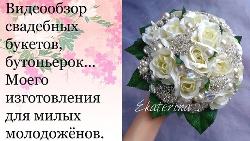 Видеообзор свадебных букетов, бутоньерок... Моего изготовления для милых молодожёнов.