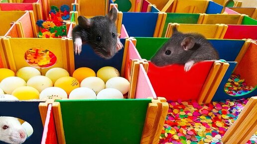 Лабиринт для питомцев, маленькие крысята проходят лабиринт.