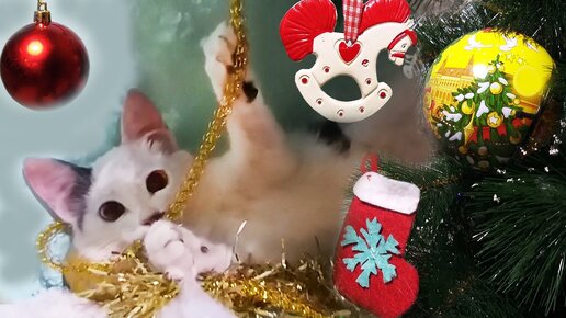 Котенок Мурка и Новый год или Реакция Кота на Ёлку и Игрушки