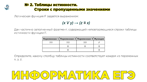 Информатика ЕГЭ. №2.3.1. Таблицы истинности. Строки с пропущенными значениями