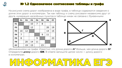 Информатика ЕГЭ. №1.2.2 Однозначное соотнесение таблицы и графа