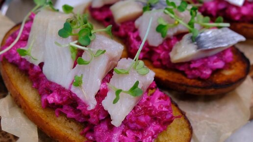 Отличная замена салата «Селедки под шубой»- «Брускетта со свеклой и сельдью»