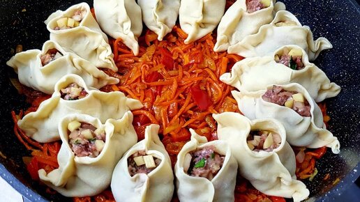 МАНТЫ БЕЗ МАНТОВАРКИ НА ОДНОЙ СКОВОРОДКЕ СРАЗУ С ПОДЛИВКОЙ ☆ НА ОБЕД ИЛИ НА УЖИН