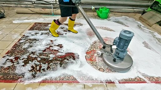Релаксирующий процесс стирки ковра: распенивание щетками и волны полоскания