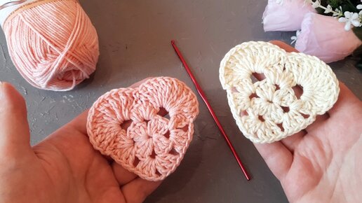 Как связать "сердечки" из бабушкиного квадрата крючком.