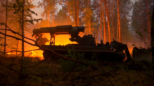 Дорога в ад: машина ИМР-2 ползет в пекло лесных пожаров под Тюменью