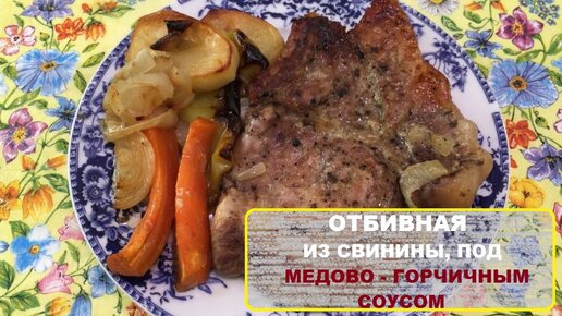 Отбивная из свинины, под медово-горчичным соусом.