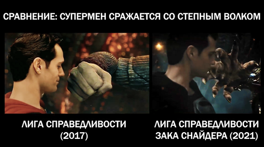 Сравнение Лиги справедливости 2017 и 2021| Супермен сражается со Степным Волком