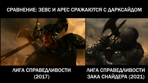 Зевс и Арес сражаются с Дарксайдом | Сравнение Лиги справедливости 2017 и 2021 Зака Снайдера