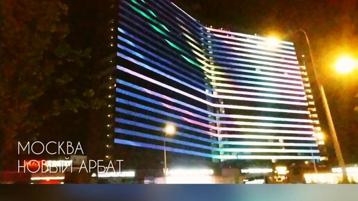Вечерняя проекция на дом-книжку на Новом Арбате. Очень красиво.