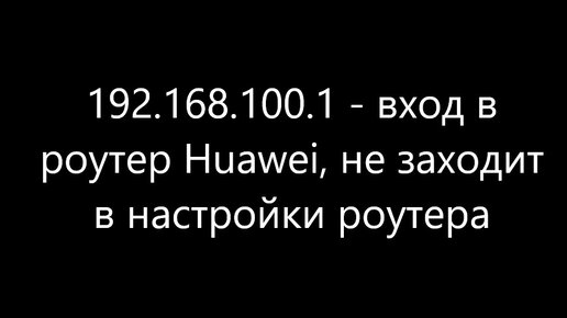 192.168.100.1 - вход в роутер Huawei, не заходит в настройки роутера
