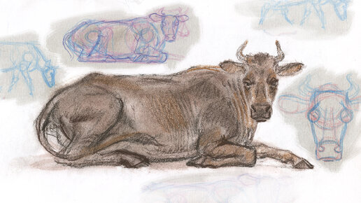 Простое рисование. Рисуем корову. A simple drawing of a cow.
