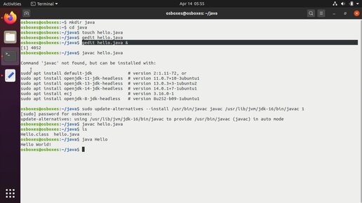9.3. Компиляция простой программы для Java.