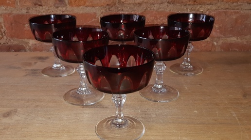 Набор. Бокалы для шампанского. Франция. 20 век. Цветное стекло. Средняя ножка.