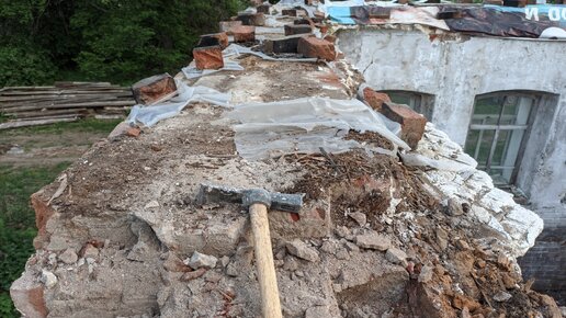 Разбираю кладку старинного дома в деревне. Подготовка к укреплению вековых стен