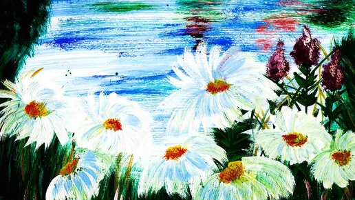 Как нарисовать ромашки легко. Рисуем лето. Рисуем пейзаж гуашью.