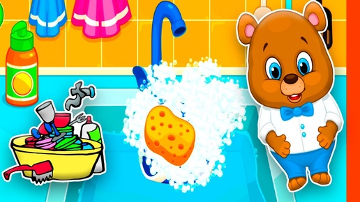 Мультик про Мишку. Мишка Моет посуду, Серия № 1. Развивающее видео для детей.