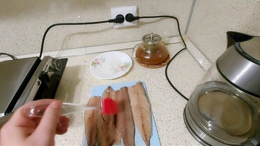 Приготовление филе скумбрии на электрическом гриль-прессе.