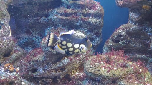 Красивая рыбка кушает кораллы.