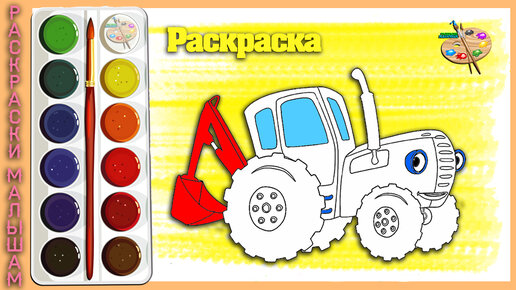 РАСКРАСКА СИНИЙ ТРАКТОР с ковшом. Детские рисунки