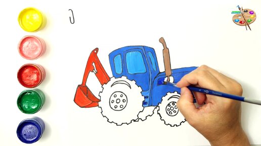 Раскраска СИНИЙ ТРАКТОР / Мультик раскраска синий трактор с ковшом для детей / Детские рисунки