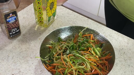 Простой салат из зеленой редьки и моркови и огурца.