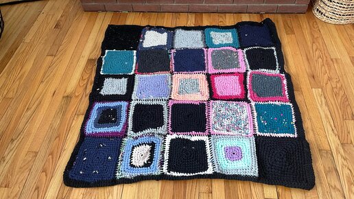 Квадратный коврик из трикотажных вещей. "Бабушкин квадрат".