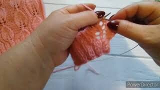 Ажурный красивый узор"Листочки".//вяжем вместе +схема//.