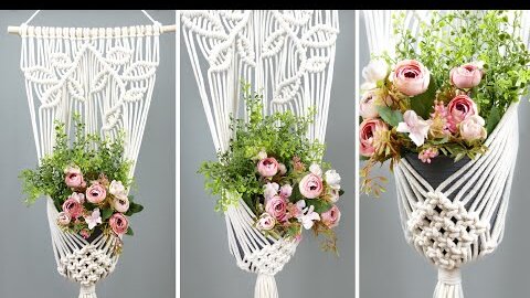 Макраме Кошпо-Вешалка для растений из макраме с листьями своими руками Идеи цветочного горшка