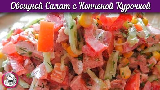 Овощной салат с копченой курочкой. Копченая курица с овощами
