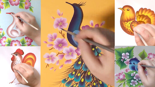 Пять способов нарисовать птиц: павлин, голубь, лебедь, петух, синяя птица