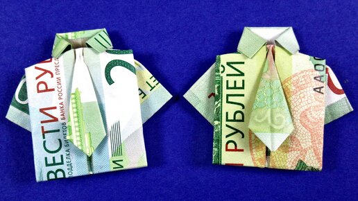 Как сложить рубашку с галстуком из купюры - МАНИГАМИ